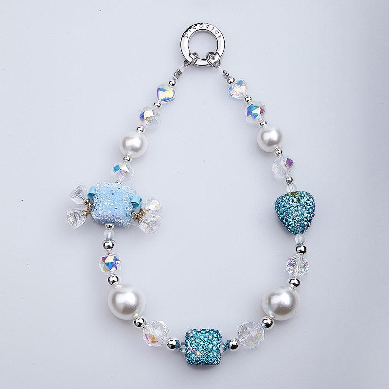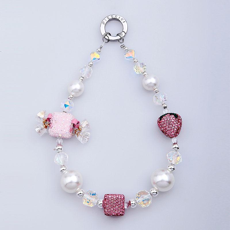 PICOCICI Phone Charms Bracelet Chain Strawberry Bell Pearls Decor Hand Strap Phone Lanyard