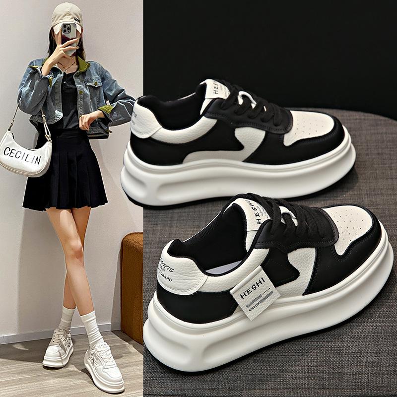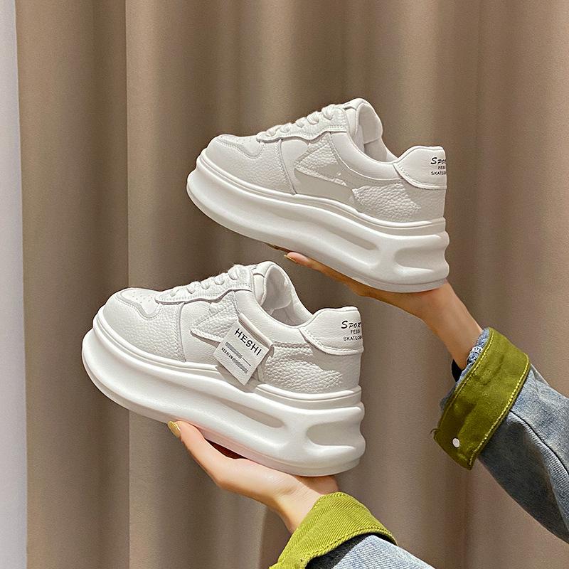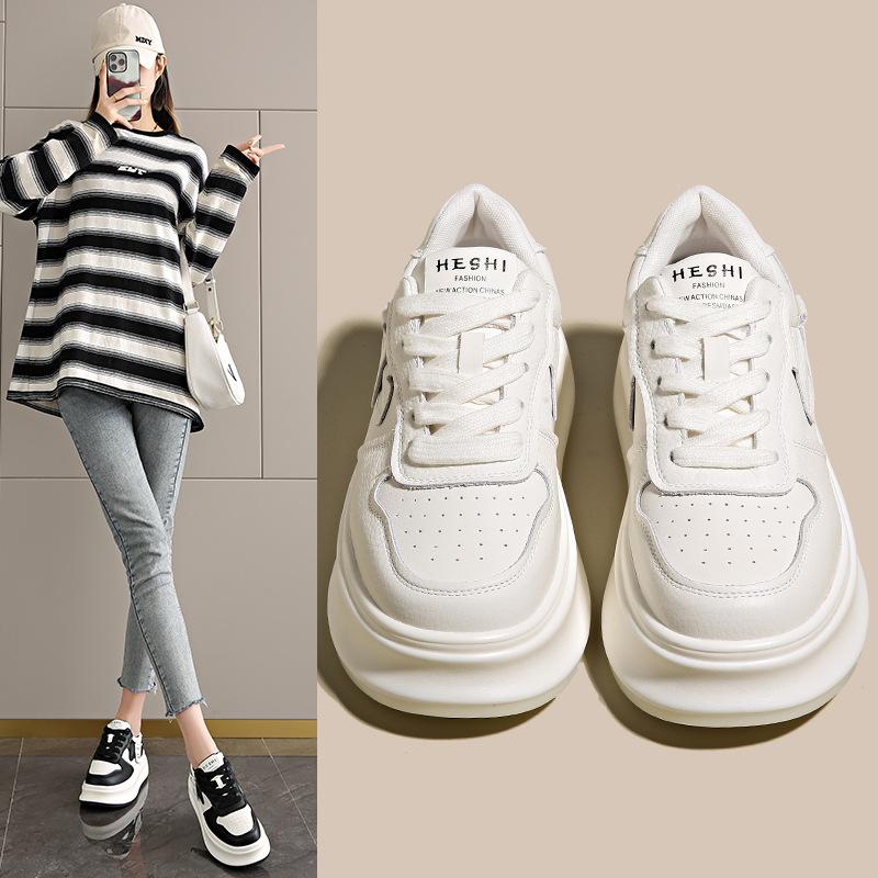 Маленькие толстоподошвенные мягкие кожаные кеды для женской коллекции весна 2024, новые, увеличивающие рост, повседневные, универсальные, на подошве-маффин, белые туфли 2388