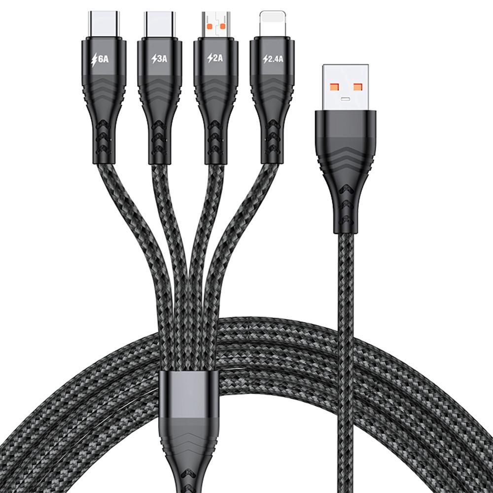 For iPhone 15 Series 2m 4-in-1 66W 6A 4-Output Fast Charging Charging Cable USB to 8Pin+Micro USB+Dual Type-C Braided Cable Adapter