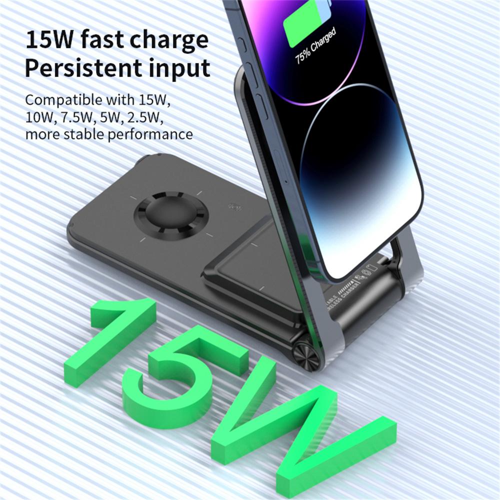 M2 Foldable 3-in-1 Phone Stand Magnetic Wireless Charger With Built-In Type-C Cable 15W Fast Charging