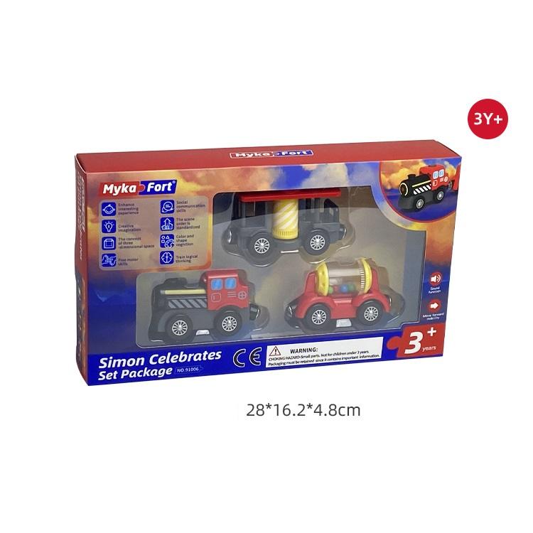 Маленький поезд, деревянная дорожка, электрическая игрушка, праздничный автомобиль Simon, детская деревянная образовательная собранная игрушечная машина
