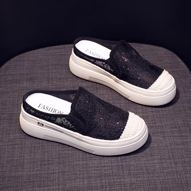 Туфли-лодочки с одной педалью, сетчатые, на толстой подошве, полутапочки, женская летняя одежда, обувь для рыбалки, сандалии, новые модели, увеличивающие рост
