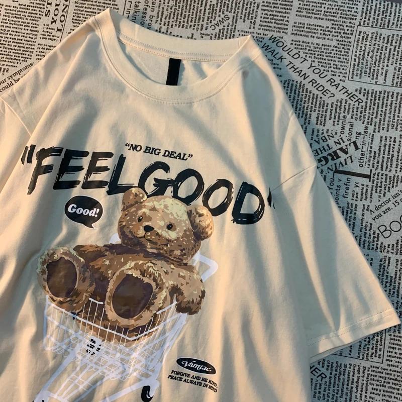 Оригинальная американская ретро-футболка с короткими рукавами и принтом плюшевого мишки для мужчин и женщин, модная футболка Harajuku из чистого хлопка