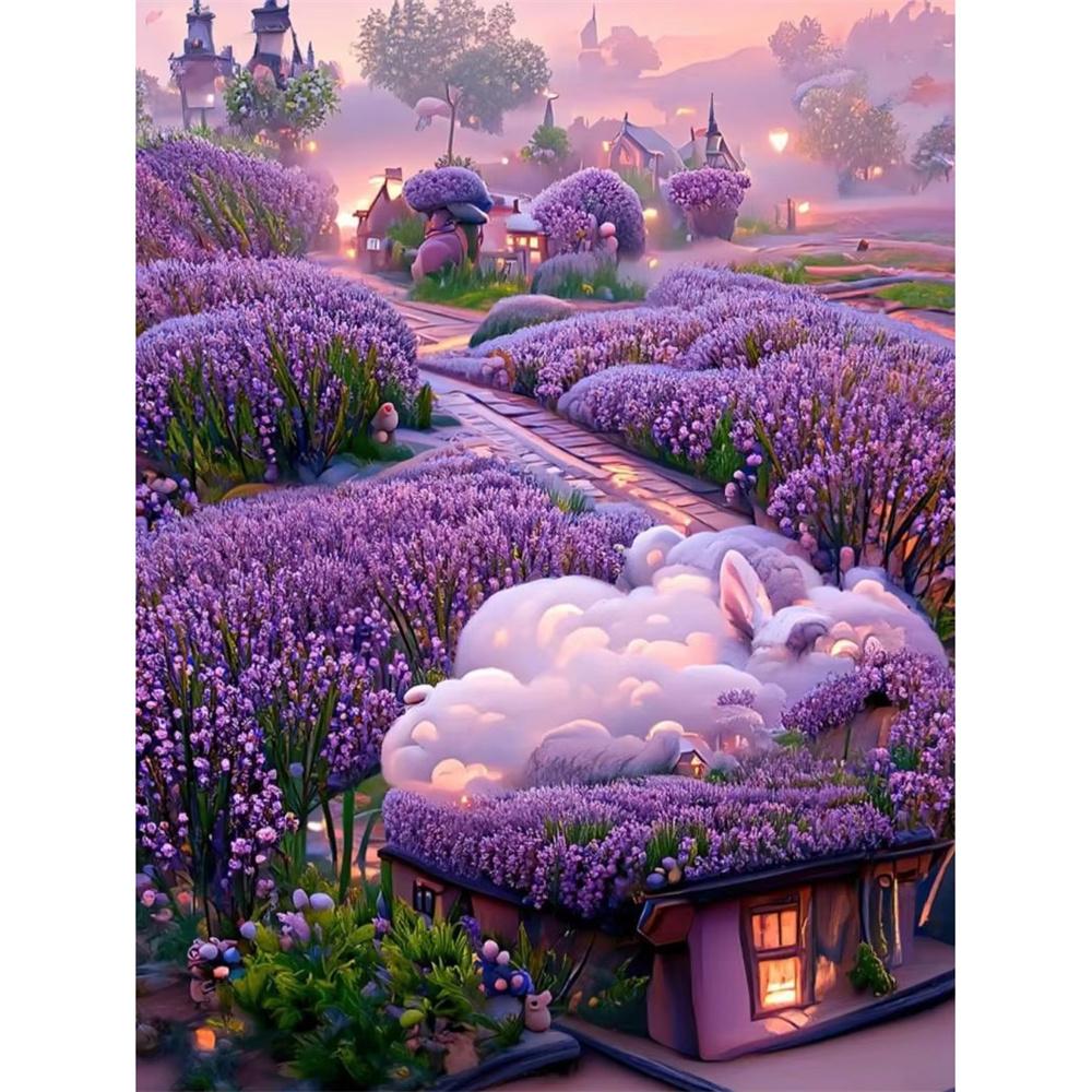 5D DIY Алмазная картина Красивый лавандовый дом и ландшафт Мозаика Алмазная вышивка Картина Полный Декор для дома со стразами
