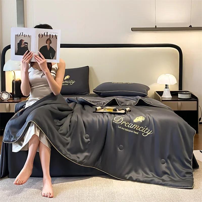 Антибактериальная вышивка, приятная для кожи имитация шелка, тонкое одеяло, кондиционер, можно стирать в прохладном летнем одеяле