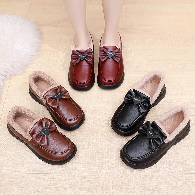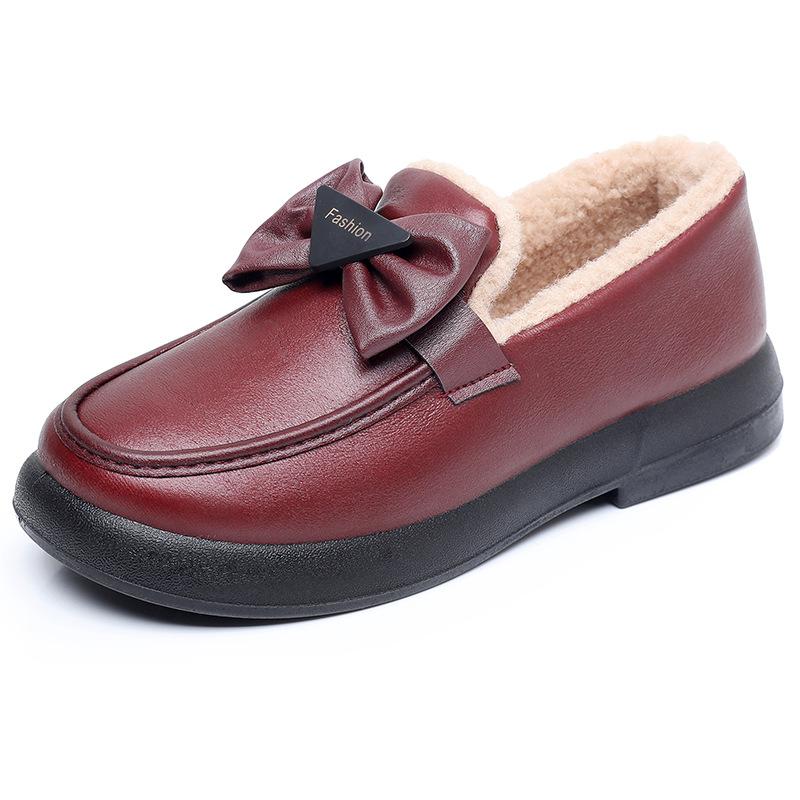 Зимние корейские старинные хлопковые женские туфли в стиле старого Пекина, зарубежные пасторальные теплые туфли с бантом из маленькой кожи, бархатные утепленные хлопковые туфли