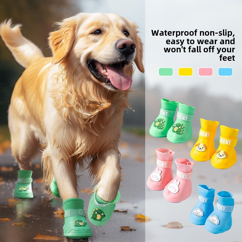 Собака Большая собака Золотистый ретривер Большая собака Мультфильм Силиконовые дождевики Нескользящие, износостойкие и водонепроницаемые туфли для домашних собак для выхода под дождь