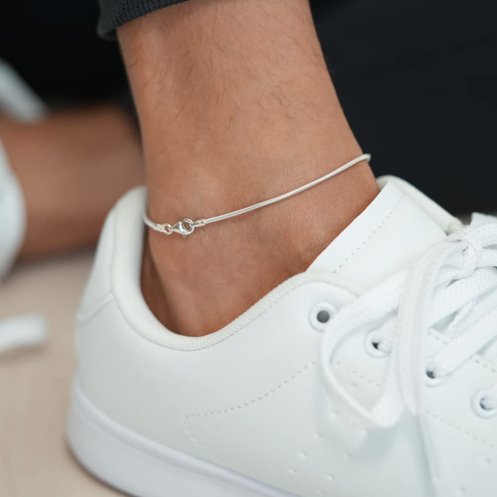 Серебро 925 Браслет на ногу Змеиная цепочка Простой Мисанга [SANT BOLEN] Женский Мужской (27)