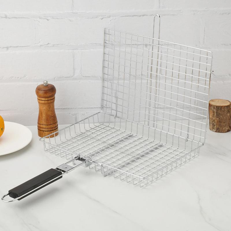 Складная переносная корзина для гриля из нержавеющей стали с ручкой для рыбы, овощей, креветок, принадлежностей для приготовления пищи