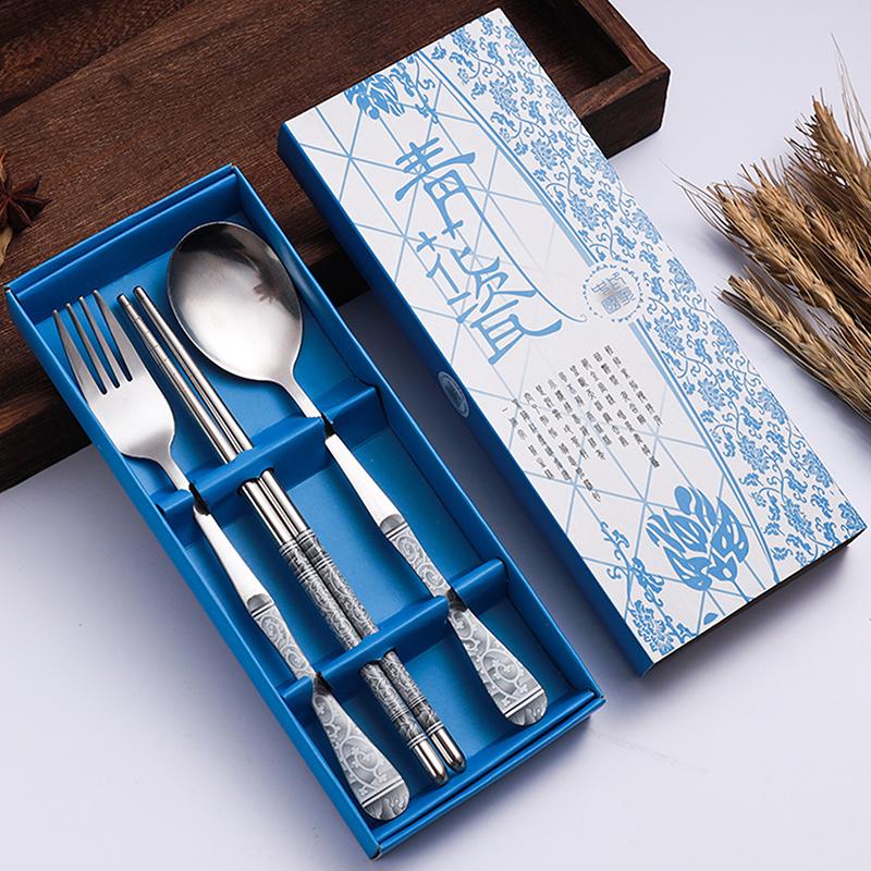 3 шт. столовых приборов из нержавеющей стали палочки для еды ложка вилка подарочная коробка портативный дорожный набор столовых приборов кухонные принадлежности