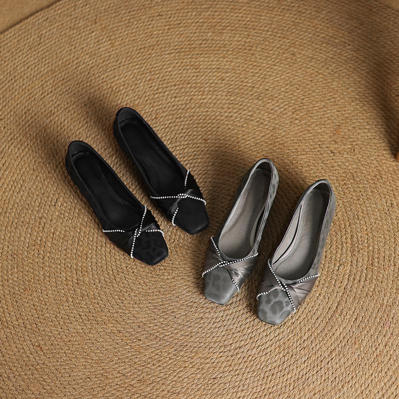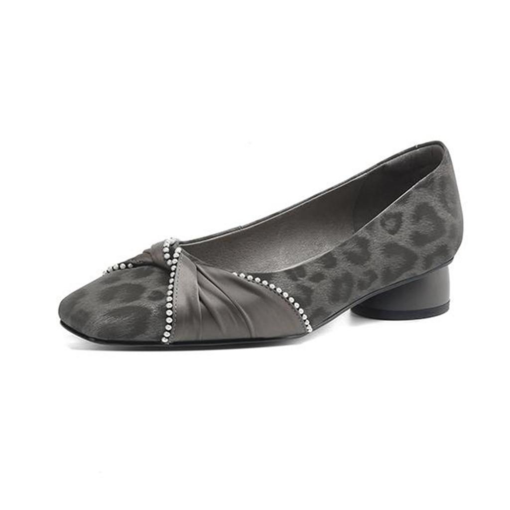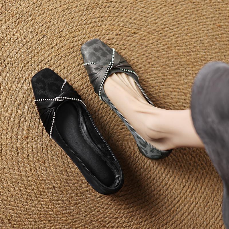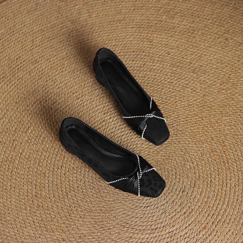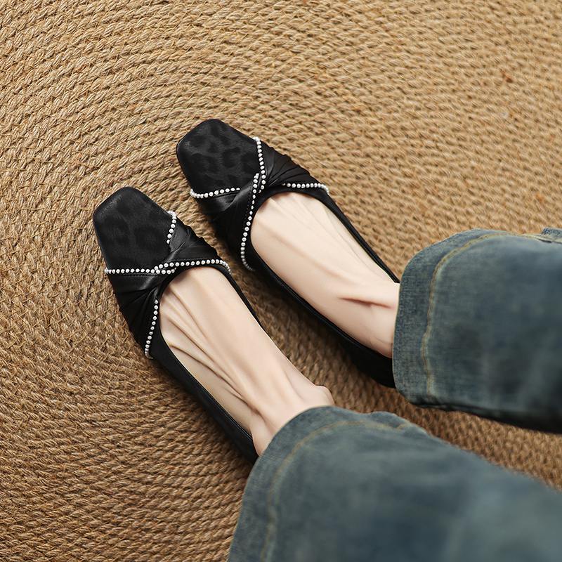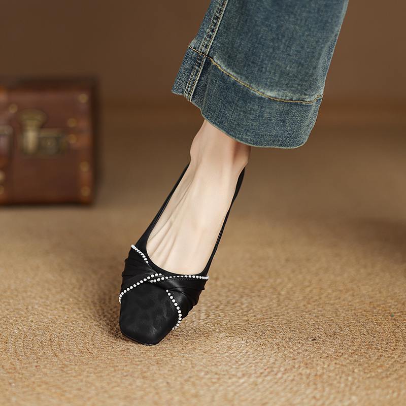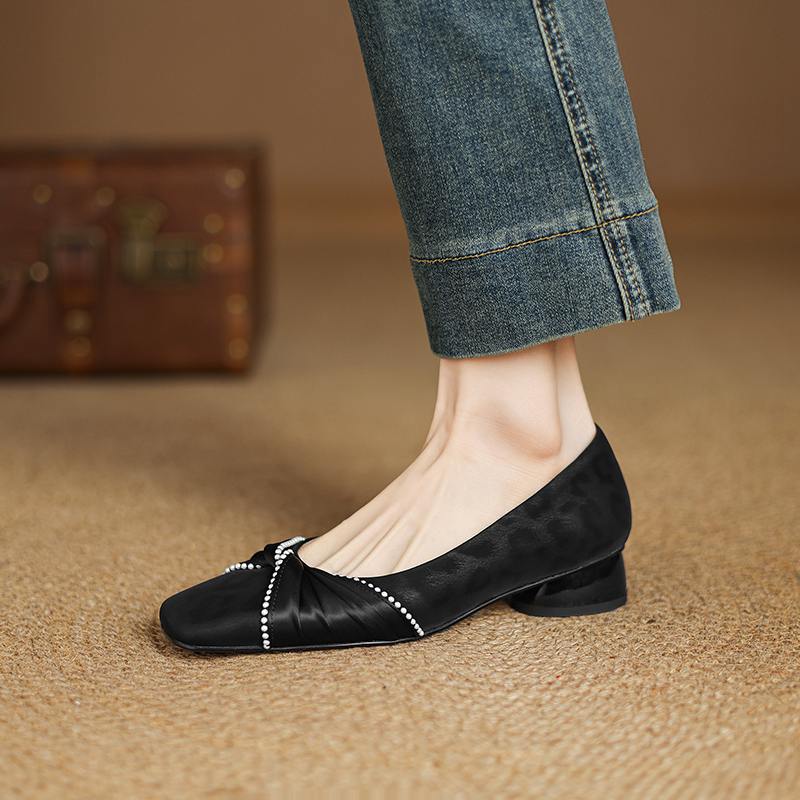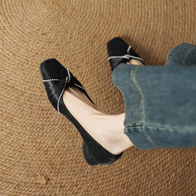Krazing Pot Туфли-лодочки из коровьей кожи, весна-лето, размер 41, на низком каблуке, женские, с квадратным носком, с жемчужными бусинами