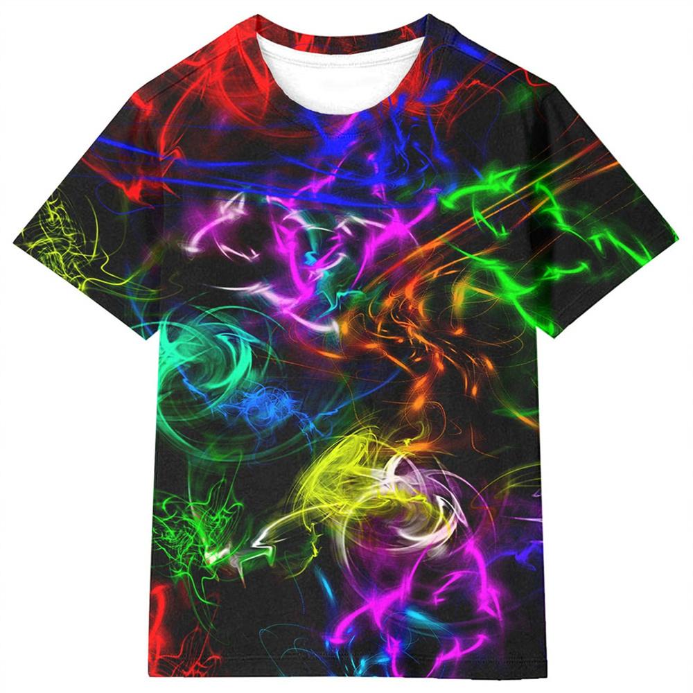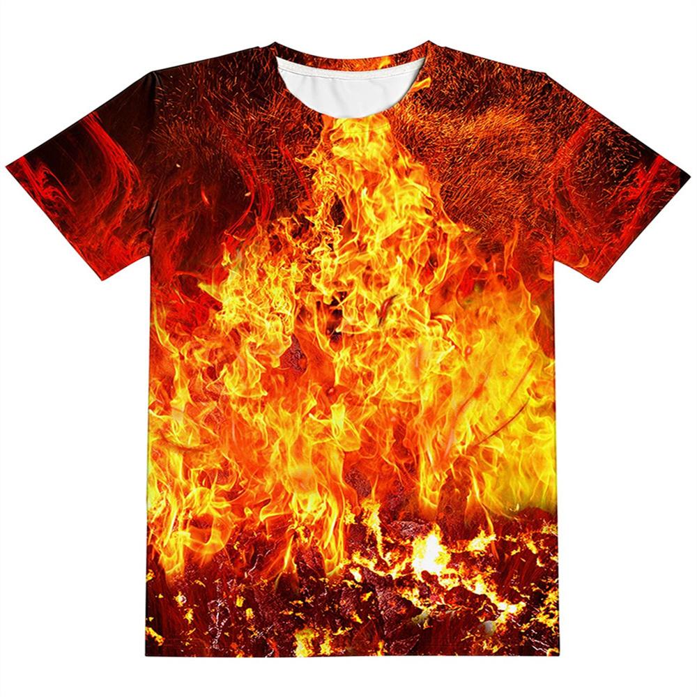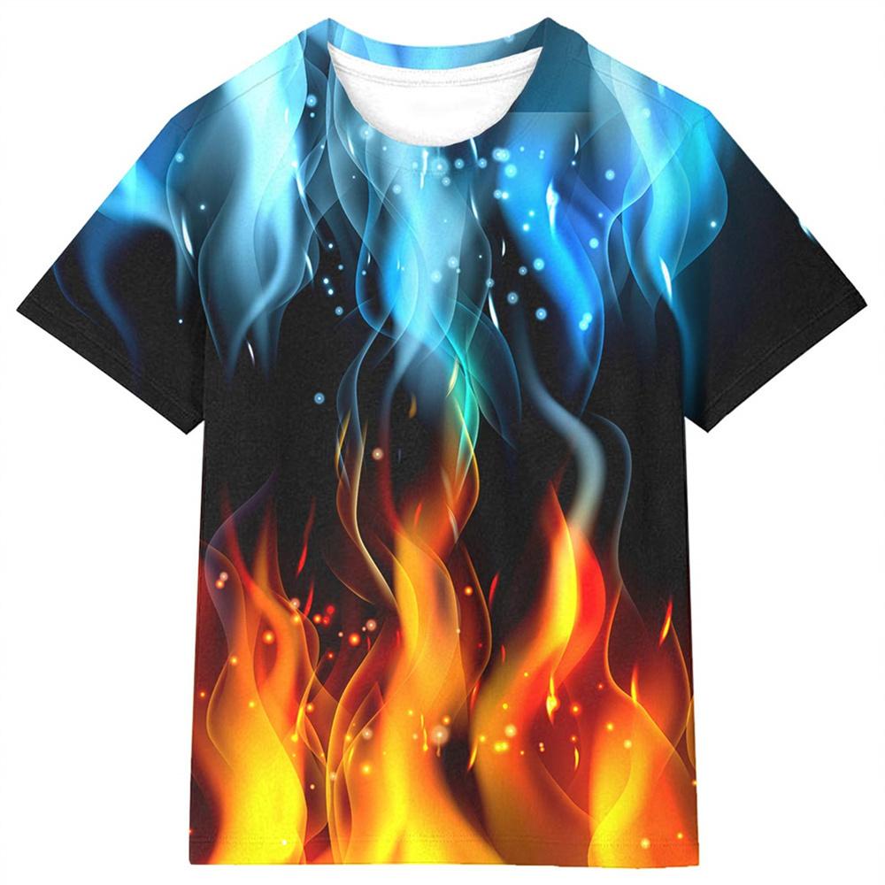 Детские футболки с 3D-принтом, рисунком пламени и молнии, футболки с круглым вырезом, повседневные футболки для мальчиков и девочек, детские футболки