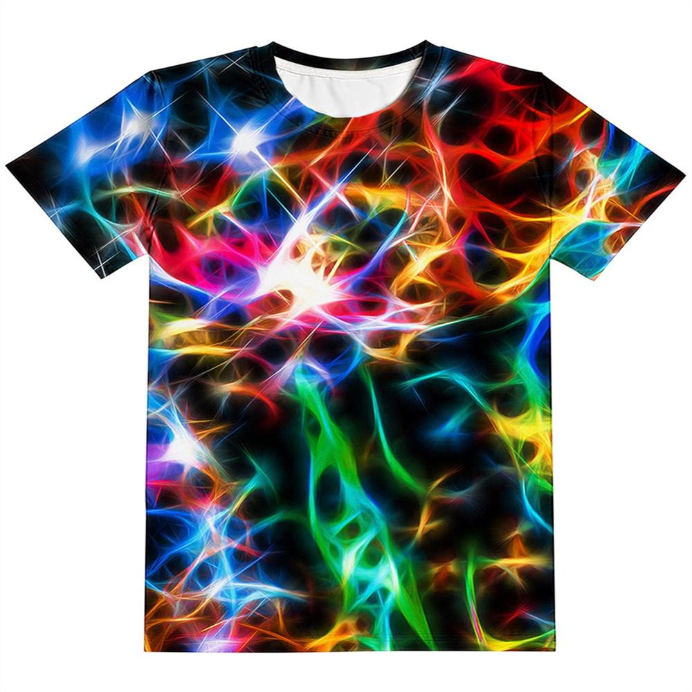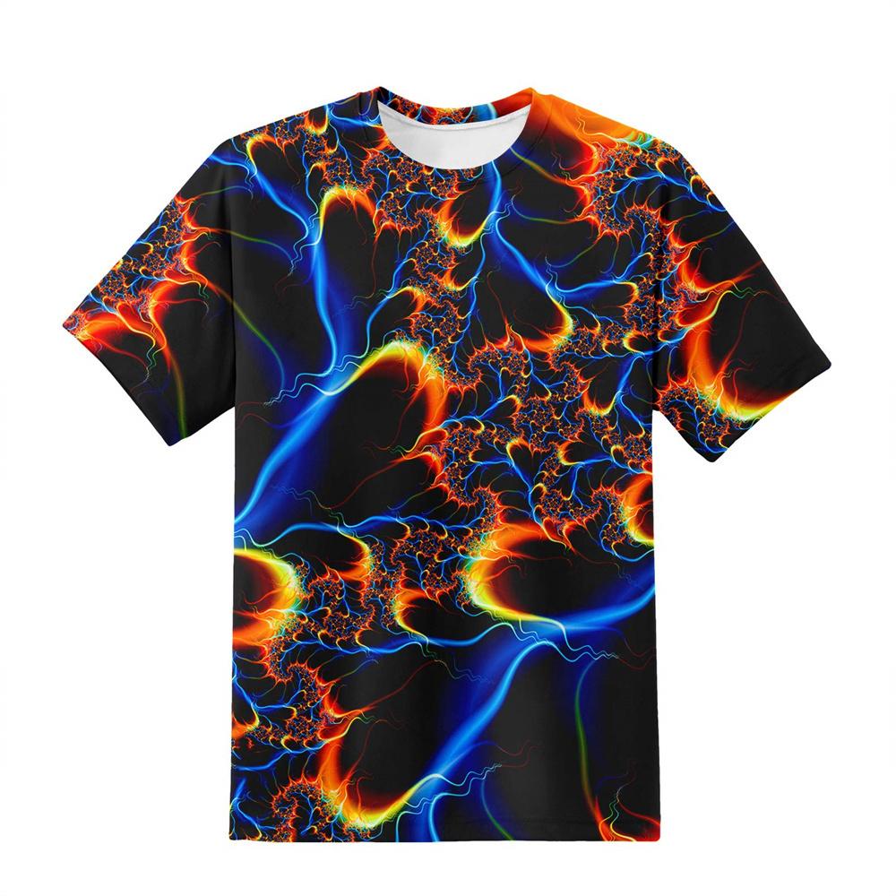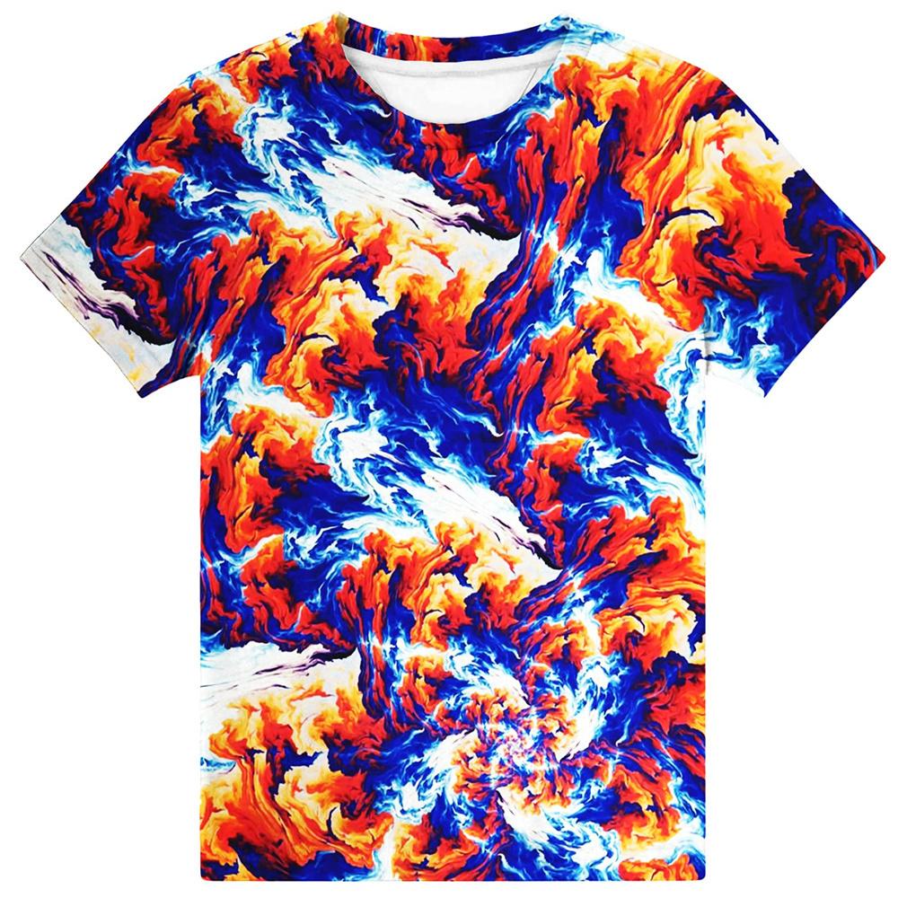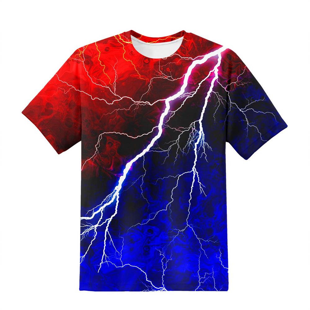 Детские футболки с 3D-принтом, рисунком пламени и молнии, футболки с круглым вырезом, повседневные футболки для мальчиков и девочек, детские футболки