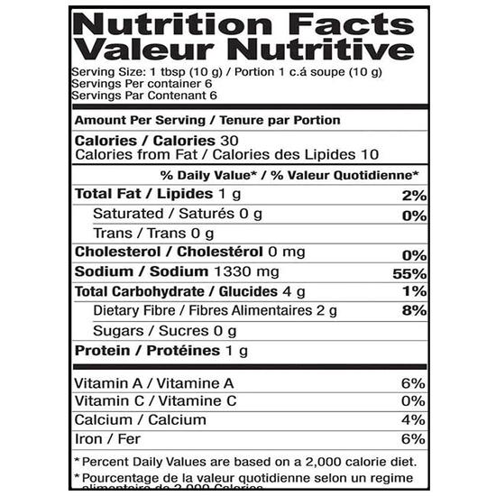 Красный перец чили, соль, паприка, нигелла, чеснок, сушеный лук, тмин, лавровый лист, анис, зеленый кардамон, черный перец, имбирь, гвоздика, фенхель, мальтодекстрин, гидролизованный соевый белок, сахар, рапсовое масло, диоксид кремния.