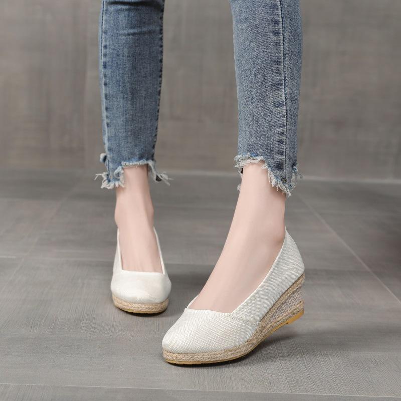 2025 женские туфли на танкетке весна и осень новые неглубокие европейские и американские импортные туфли на высоком каблуке женские туфли с острым носом соломенные одинарные ш
