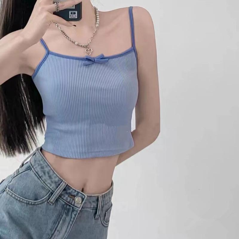 Новый французский женский жилет с бантом на шее, женский летний облегающий трикотажный короткий укороченный топ