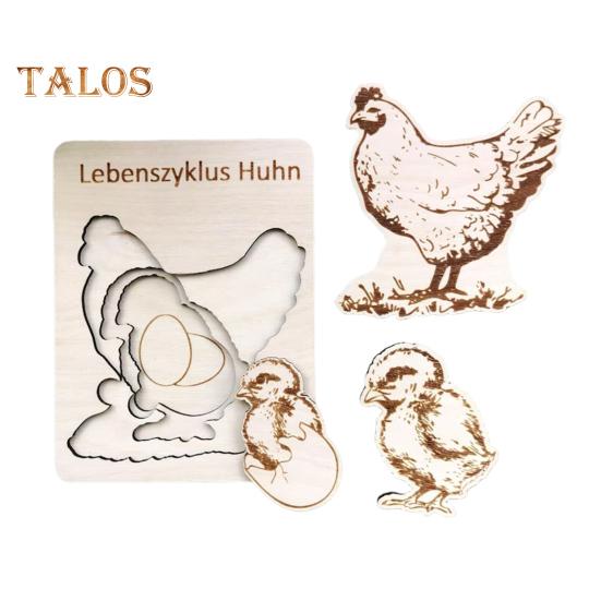 Привлекательный образовательный опыт: Исследуйте увлекательный мир жизненных циклов с помощью этой деревянной головоломки.. Каждый слой наглядно отображает стадии роста курицы, стимулируя любопытство и стремление к обучению у детей в возрасте от 3 до 5 лет.