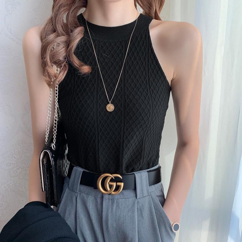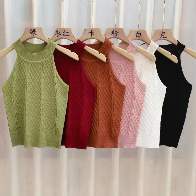 Осенне-зимняя мода с халтер-воротом, трикотажная женская безрукавка, утягивающая базовая рубашка из пряжи Core, не наносящая вреда коже