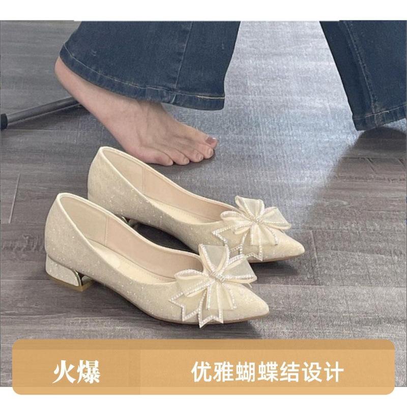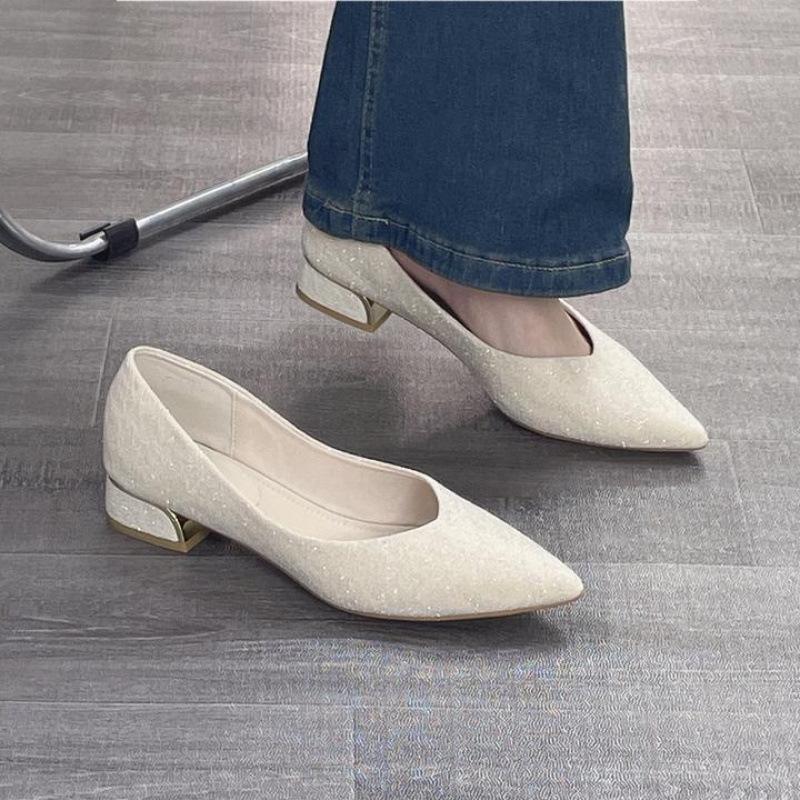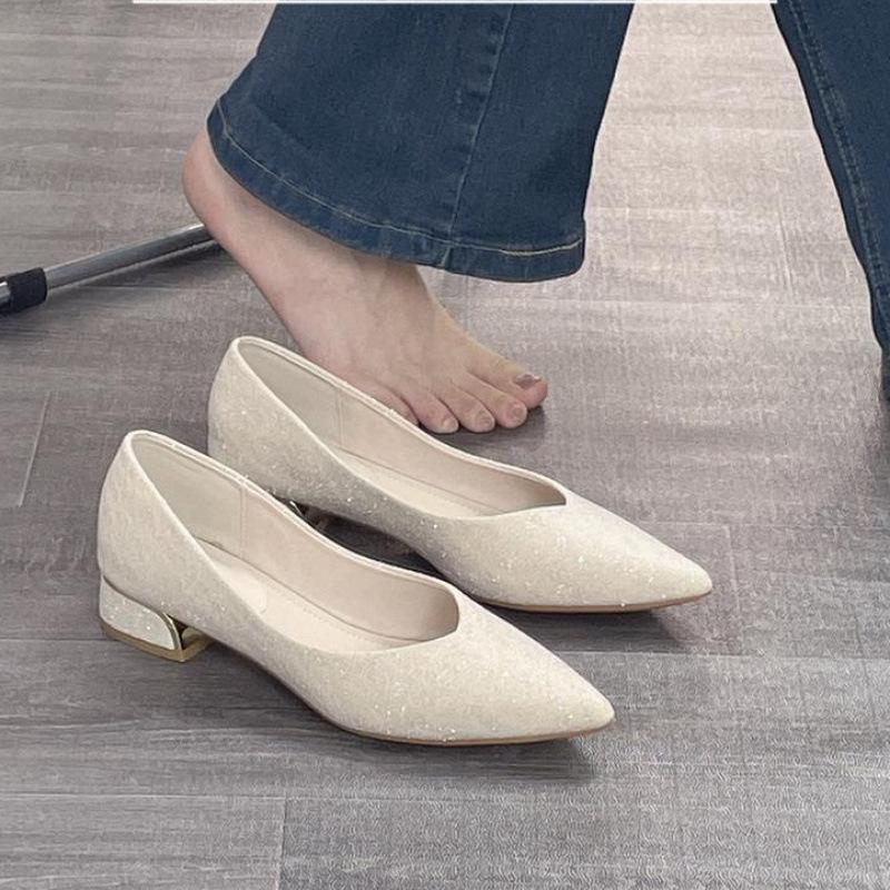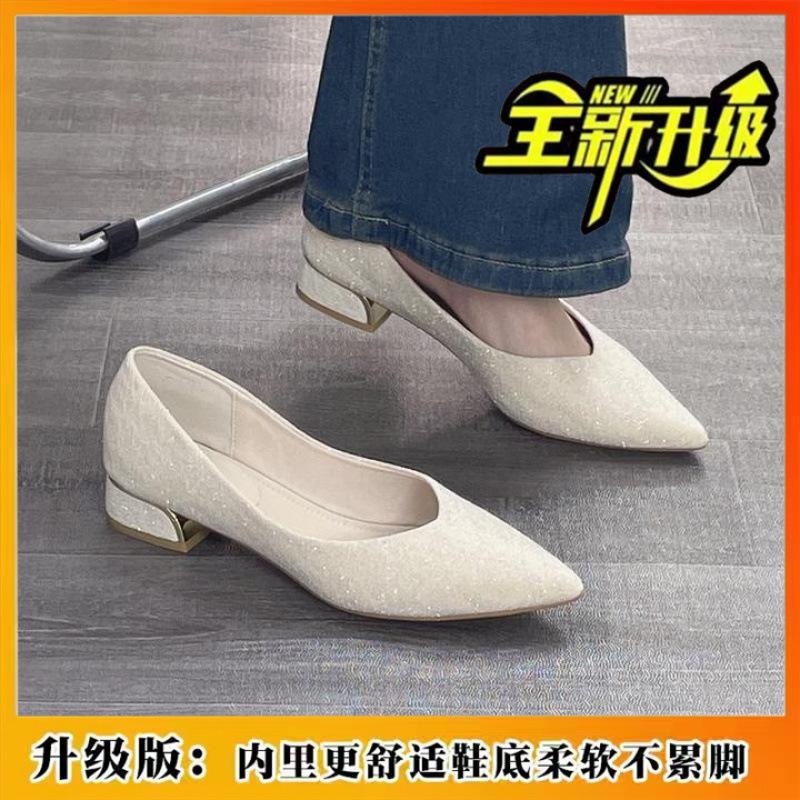 2025 новая осенняя юбка заостренные одинарные туфли с неглубоким горлом интернет знаменитости женские туфли подружки невесты на толстом каблуке универсальные темпераментные туфли