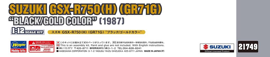 Hasegawa Suzuki Цветная пластиковая модель 21749 1/12 GSX-R750(ЧАС)(GR71G) Черное золото