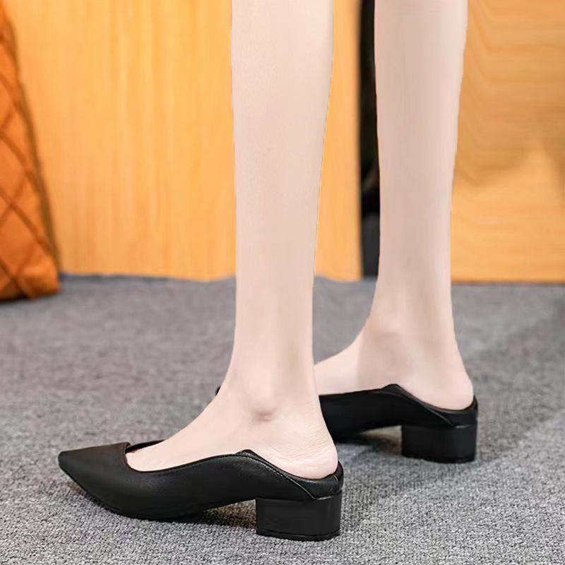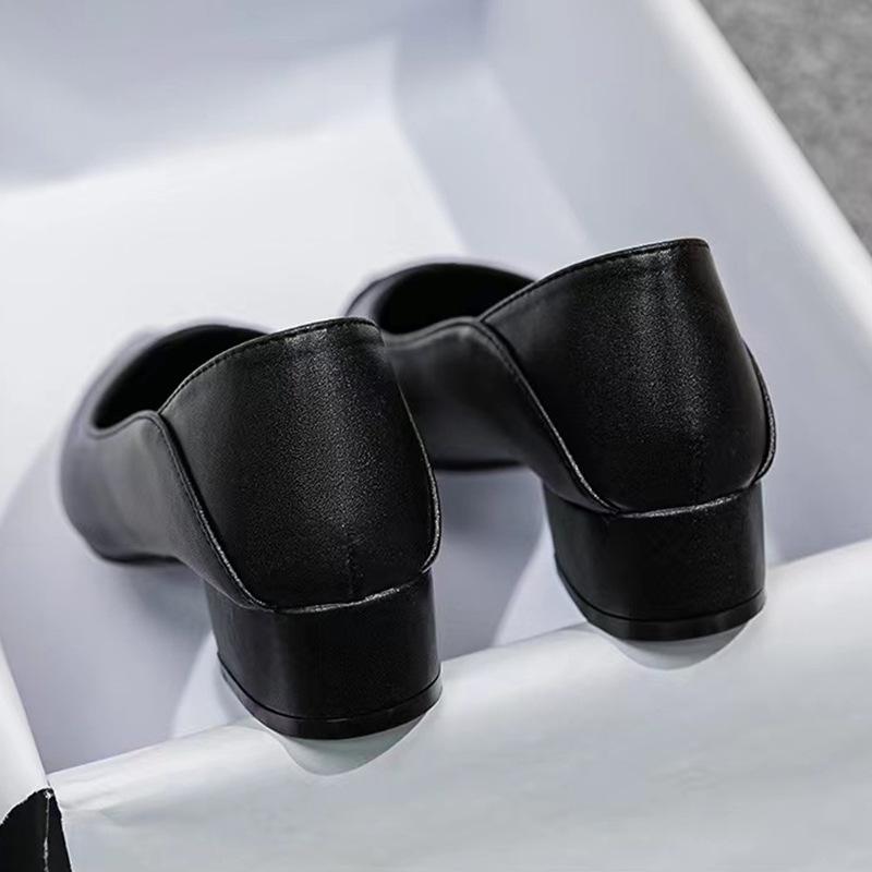 Остроносые одинарные туфли женские 2025 рабочие кожаные туфли на толстом каблуке не устают ноги женские профессиональные рабочие туфли женские черные
