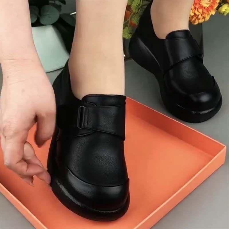 Весна и осень на мягкой кожаной толстой подошве, туфли-маффины для женщин среднего и пожилого возраста, мягкая подошва, ретро, легкие, круглые женские туфли