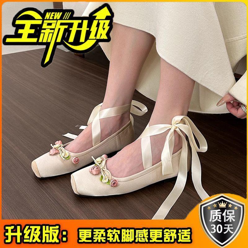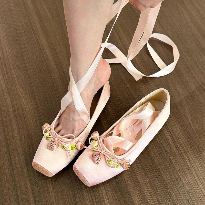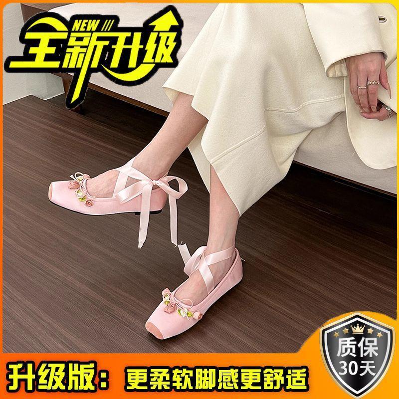 Милые атласные розовые балетки с квадратной головкой, женские новые туфли с одной педалью, с плоским дном и розовым ремешком