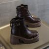 Кожаные коричневые ботинки Martin женские осень-зима 2024 новые тонкие ботинки на толстой подошве толстый каблук короткие ботинки Chelsea