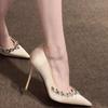 2025 осень новые белые французские туфли на высоком каблуке женские заостренные стразы все включено тонкие каблуки не устают ноги одиночные туфли свадебные туфли