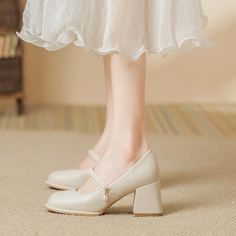 Туфли-чонсам Мэри Джейн, одинарные туфли для девочки, новинка 2025 года, фея, толстый каблук, высокие каблуки, мягкая кожа, вечерние, нежные, туфли для подружки невесты — купить товар онлайн с бесплатной доставкой по всему миру!