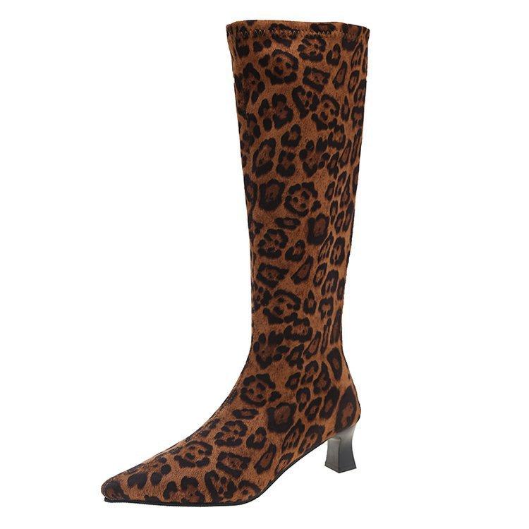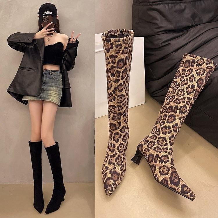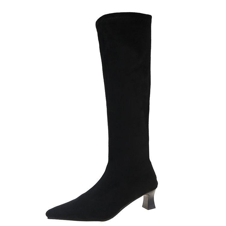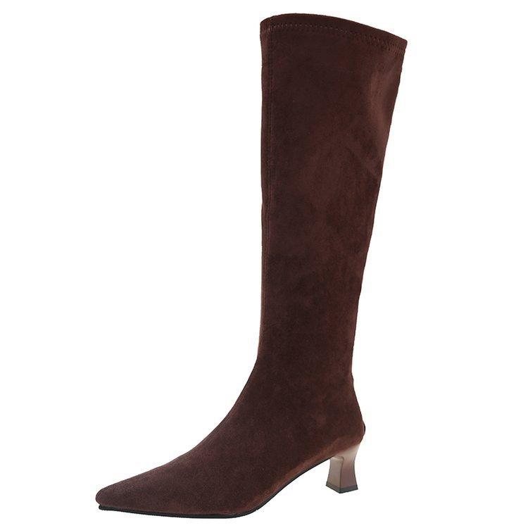 Замшевые сапоги осень и зима бархатные 2024 новые имперская сестра ветер острый носок высокий каблук задняя молния средняя длина голенища тонкие сапоги