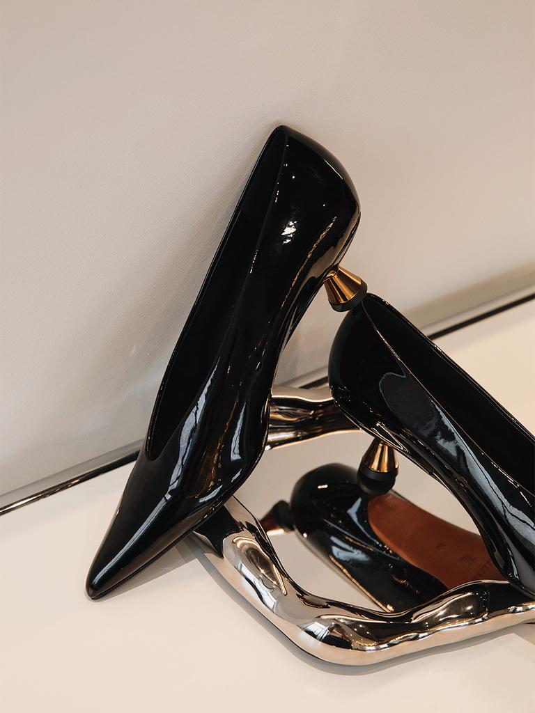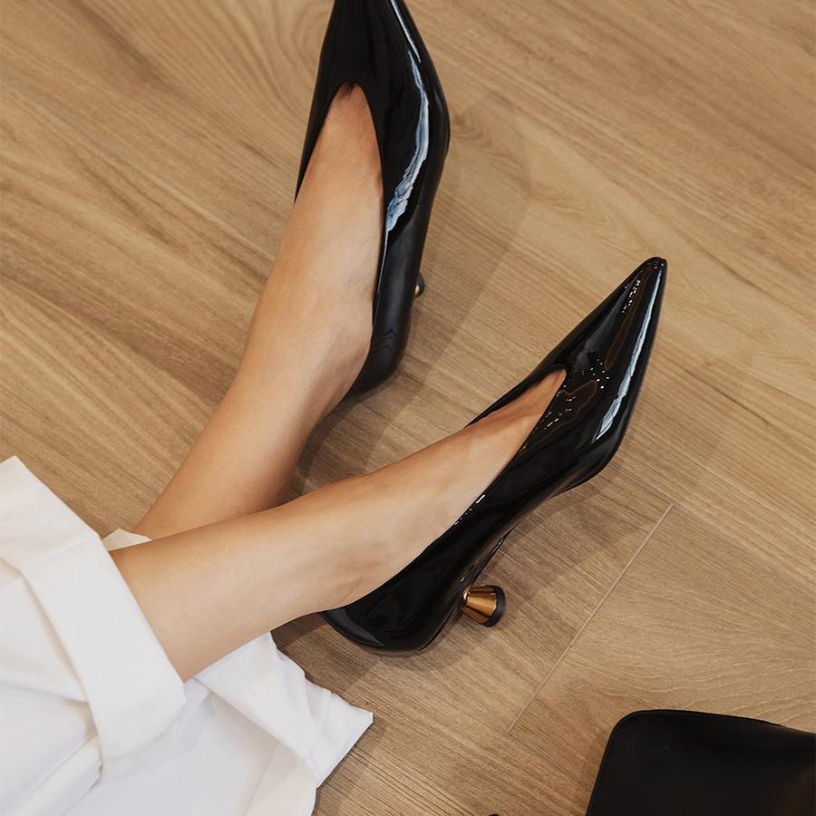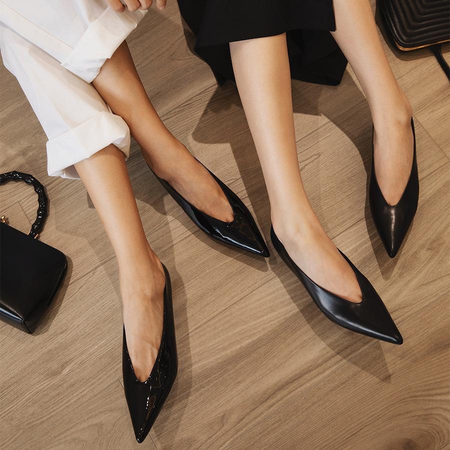 2024 г., новые модели ранней весны, туфли с острым носком и глубоким V-образным каблуком, женские туфли из лакированной кожи на низком каблуке