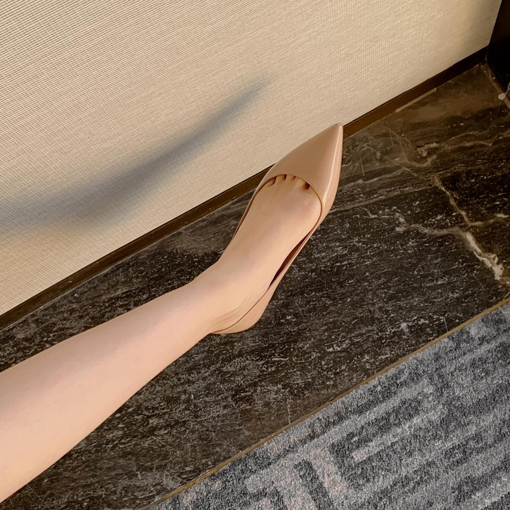 Туфли-лодочки женские нюдовые весна-осень 2024 года новые сексуальные туфли с красной подошвой нежные темпераментные остроносые туфли на плоской подошве