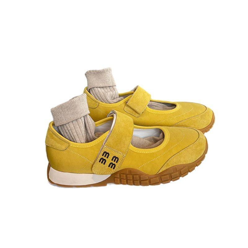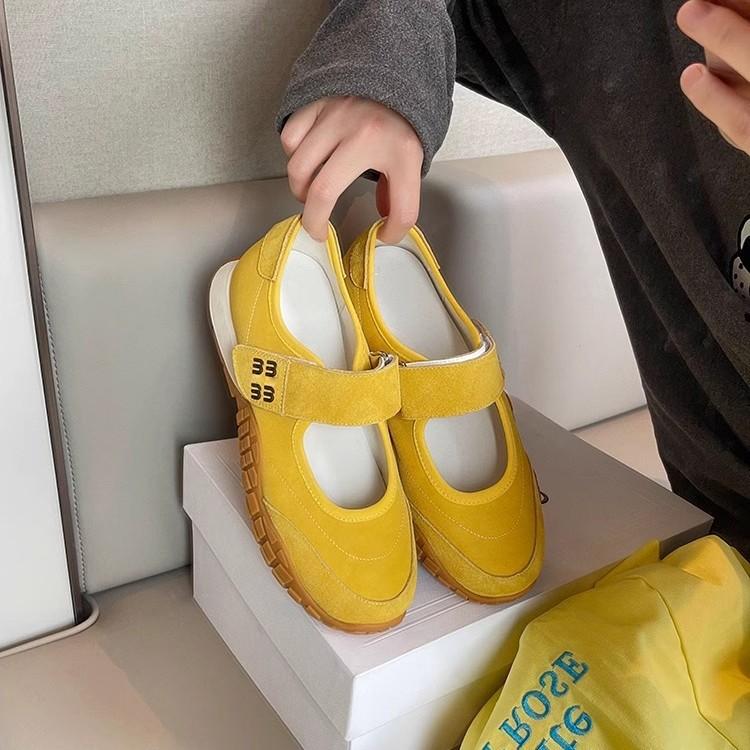 Gu Yun Французская женская обувь Mary Jane 2025 года Новая универсальная платформа на липучке из дышащей кожи Повседневная парусиновая обувь
