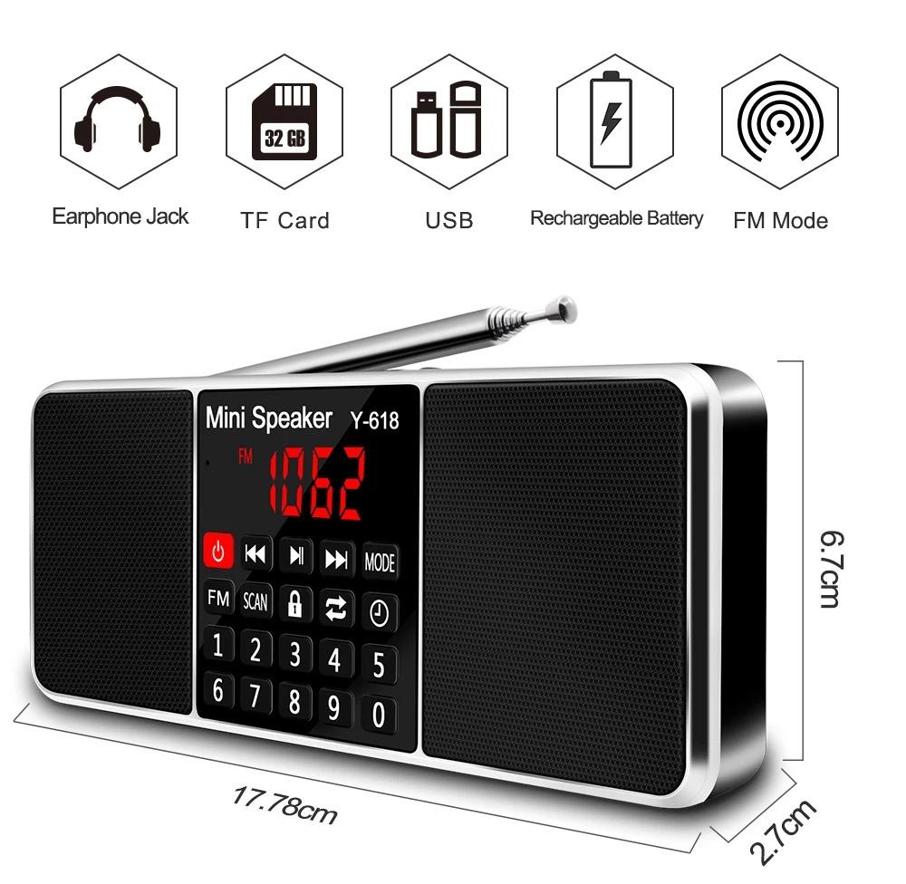 Цифровой FM-радиоприемник, динамик, стерео MP3-плеер, поддержка TF-карты, USB-накопитель, светодиодный дисплей, время выключения, портативные радиоприемники