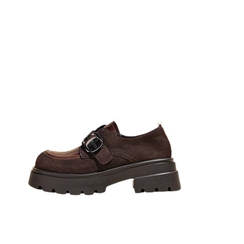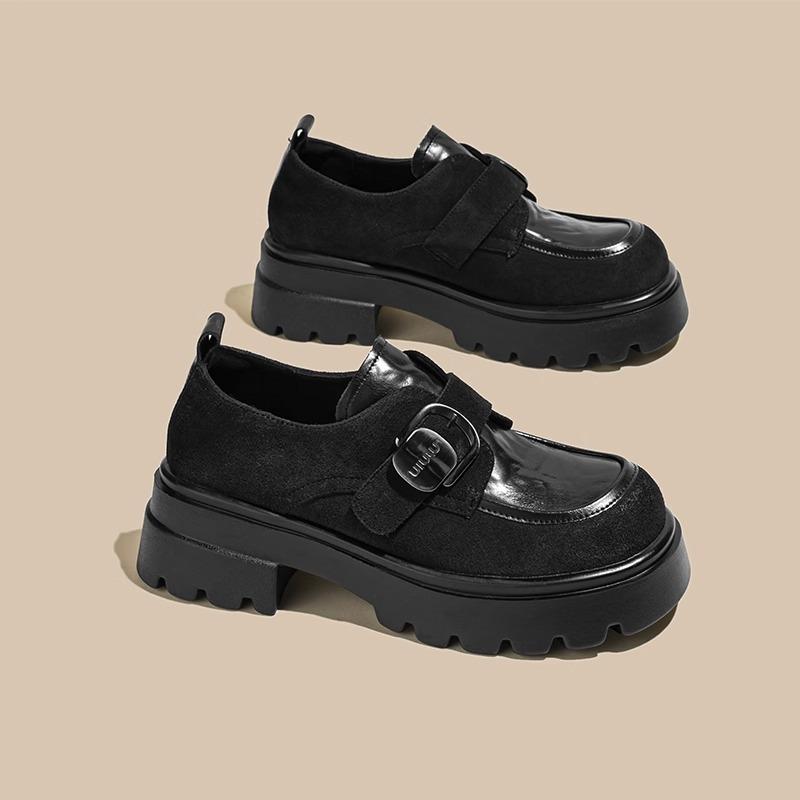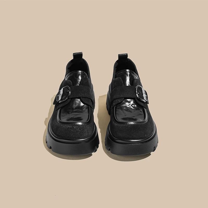Черные туфли на платформе из кожи в британском стиле, женские, осень 2024, новые туфли на толстом каблуке, мокасины с одной педалью, детские