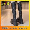 2024 осень и зима новые маленькие рыцарские сапоги с застежкой-молнией сзади на толстой подошве с высокой эластичной трубкой, но сапоги до колена для детей