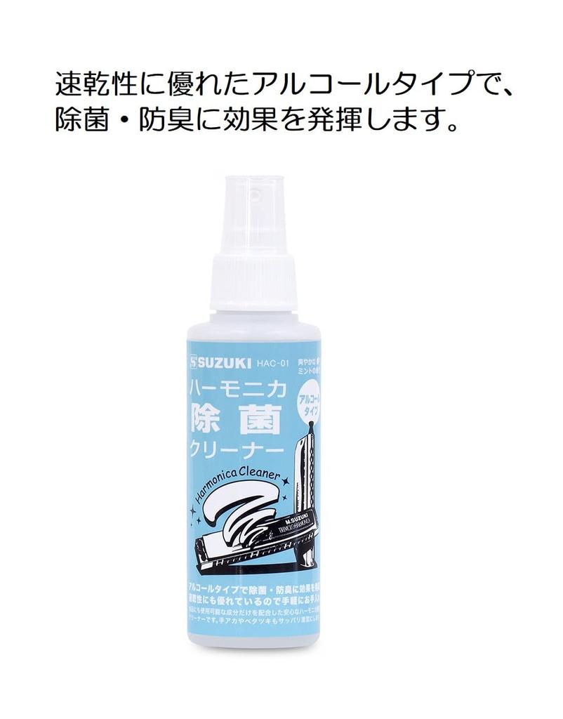 Keep your harmonica clean and hygienic with the SUZUKI Harmonica Disinfectant Cleaner HAC-01.