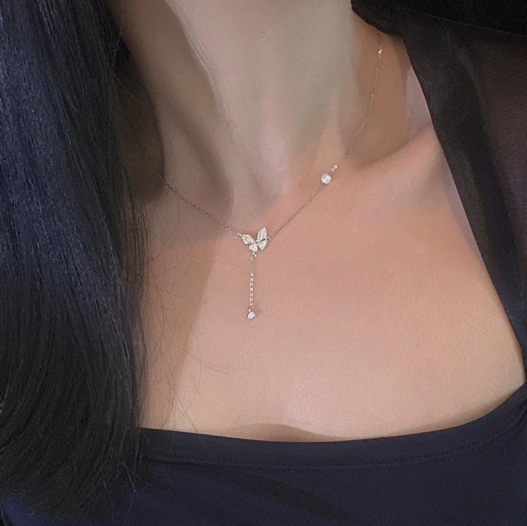 Корейский стиль модная цепочка на ключицу бабочка жемчужная кисточка цепочка на ключицу высококачественный дизайн кулон подарок