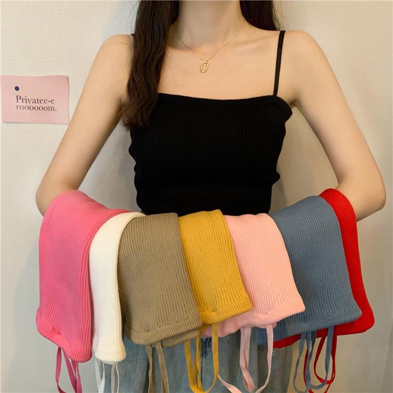 Летняя новая женская корейская версия все подходящего тонкого сексуального пряного простого трикотажного маленького жилета снизу халтер топа — купить товар онлайн с бесплатной доставкой по всему миру!