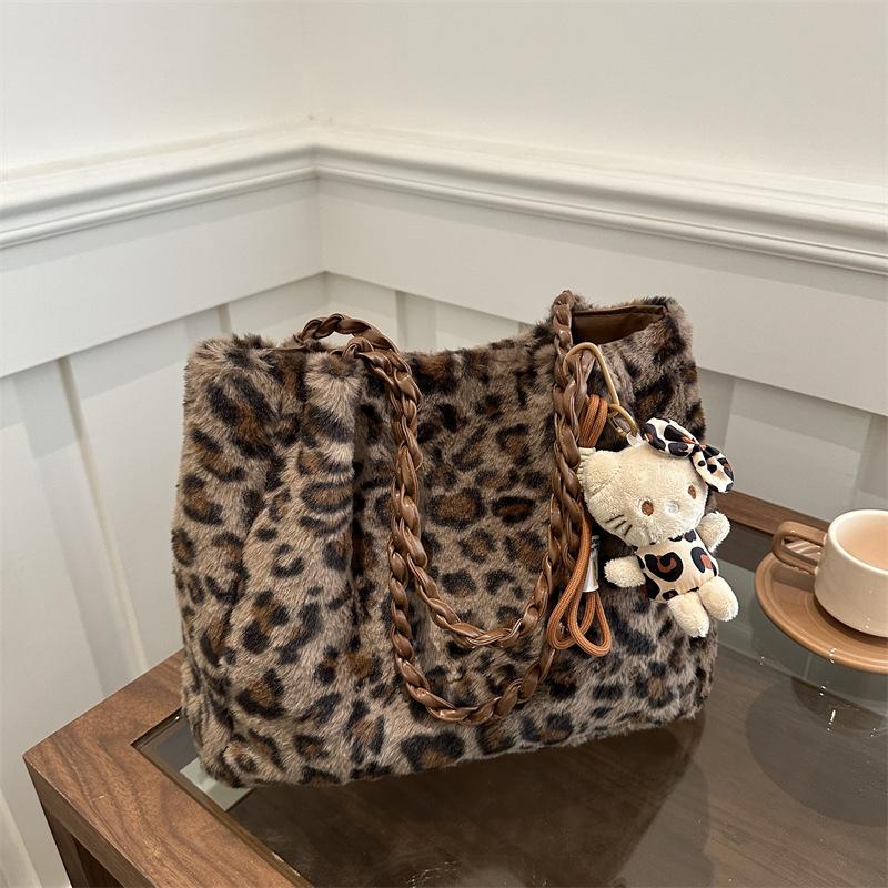 Зимняя плюшевая сумка-тоут с леопардовым принтом, женская модная сумка через плечо с цепочкой, универсальная пушистая сумка-мессенджер — купить товар онлайн с бесплатной доставкой по всему миру!