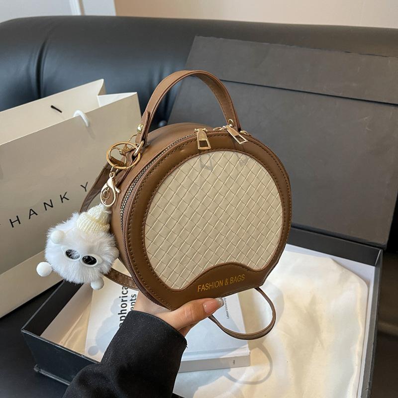 Ретро Сплайсинг Модная Текстура Сумка Весна И Лето Универсальная Наплечная Сумка-Мессенджер Маленькая Круглая Сумка Женская