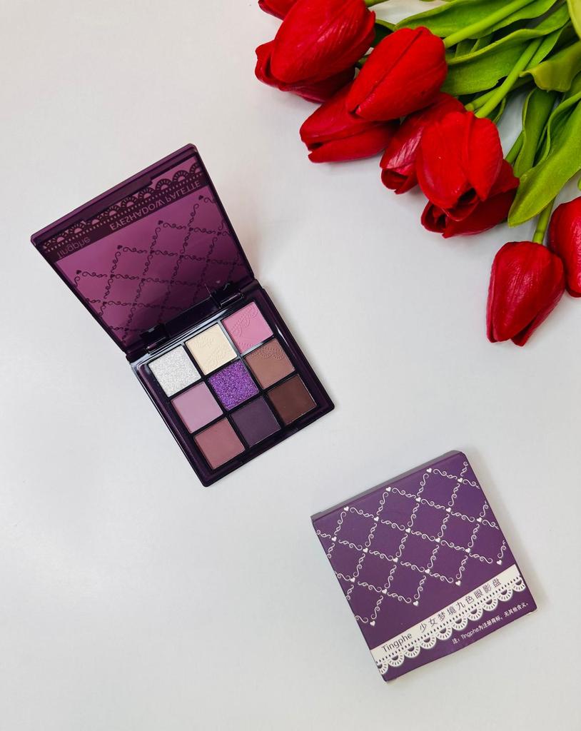 Эта палетка теней для век представляет собой компактный набор из девяти оттенков. Она выполнена в фиолетово-коричневой гамме, что делает ее универсальной для создания как повседневных, так и более выразительных вечерних образов. 🔸Преобладают фиолетовые и лиловые оттенки, от светлых пастельных до насыщенных темно-фиолетовых, а также несколько коричневых тонов для создания глубины и нейтрализации. 🔸Разнообразие текстур (матовые, шиммерные, глиттерные) позволяет создавать многомерные макияжи. 🔸Глиттерный оттенок, вероятно, потребует использования базы для лучшего сцепления и минимизации осыпания. 🔸Упаковка палетки и ее коробочка выполнены в едином фиолетовом цвете с узором, что придает ей девичий и мечтательный вид. Спасибо продавцу ❤️ и Joom ❤️