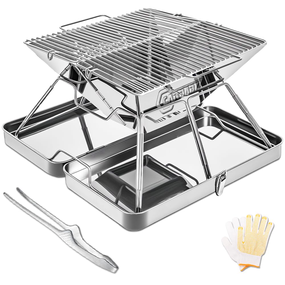 CARBABY барбекю-печь-подставка для костра с ящиком для хранения из нержавеющей стали для 2-4 человек для кемпинга на открытом воздухе