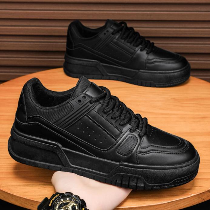 Мужская обувь весна и осень нишевый дизайн универсальные повседневные чисто черные туфли для молодежи спортивные туфли на толстой подошве увеличивающие рост