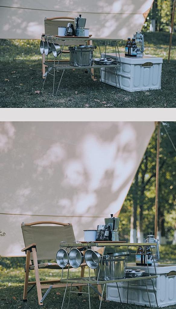Кемпинговая стойка Moon Field Rack Ground Rack полностью из нержавеющей стали с сумкой для хранения T-230A 2 шт., верхняя пластина из бамбука, полный комплект T-230A-2TP