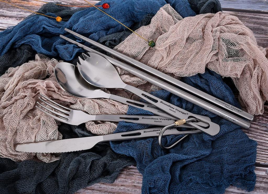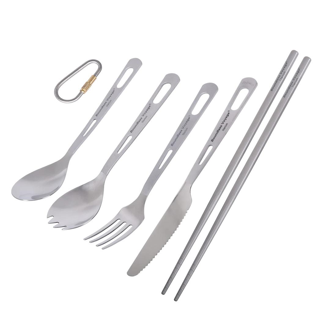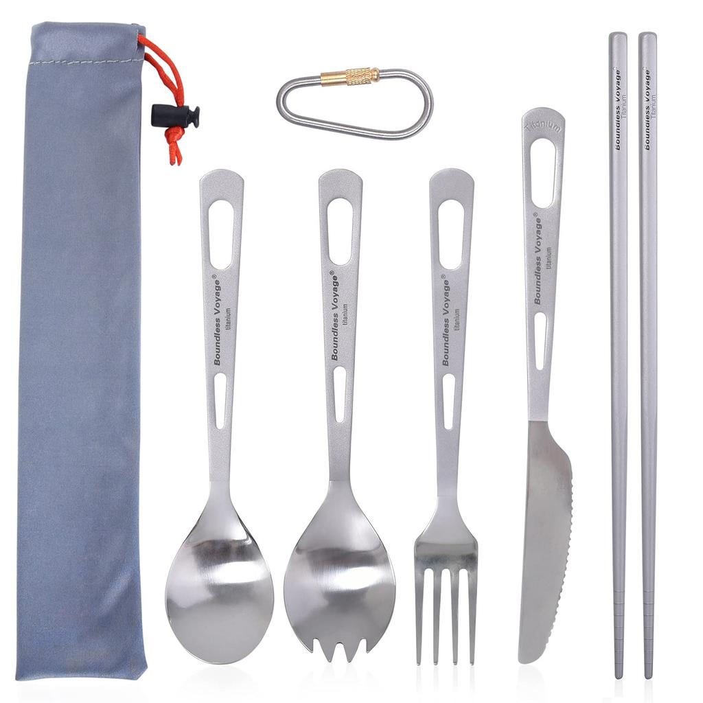 Boundless Voyage Кемпинг титановые столовые приборы набор из 5 предметов вилкаложканожитрещиноватая ложкапалочки для еды (Набор квадратных палочек для еды)