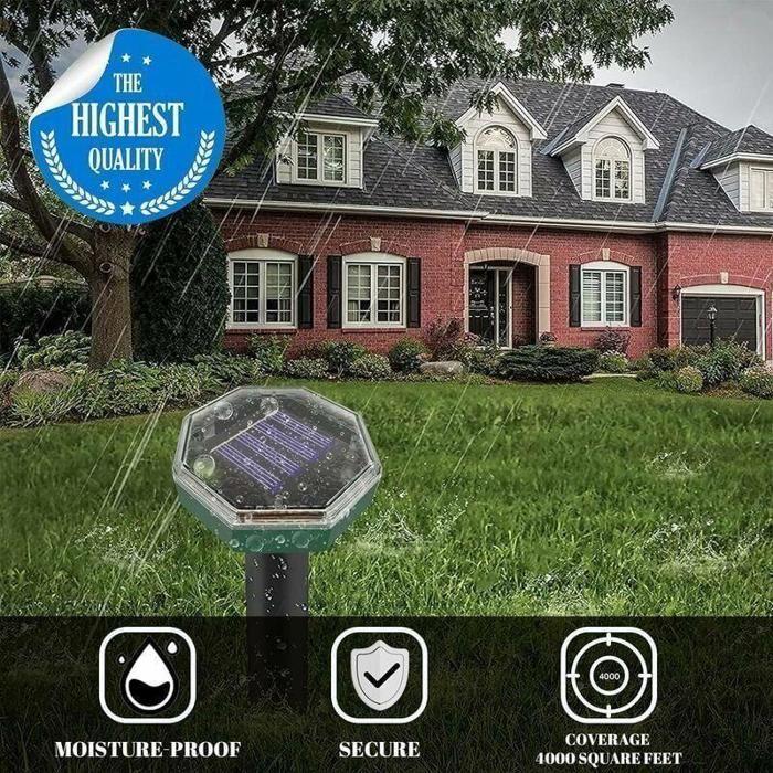 Repulsif Taupe Solaire a Ultrason,Lot de 4 Anti Taupe, Anti Taupe Solaire Vibration Et Ultrasons, IP65 Impermeable, Repulsifs Solair