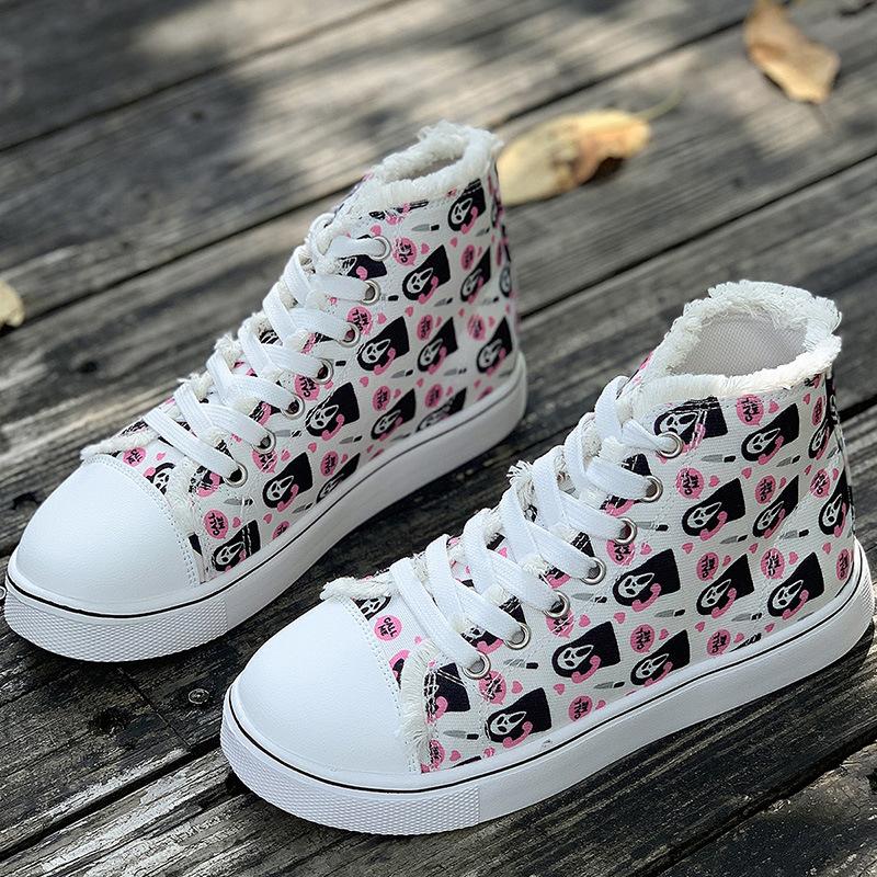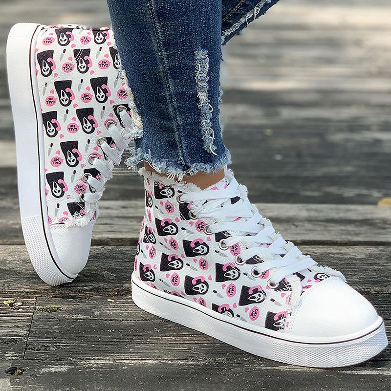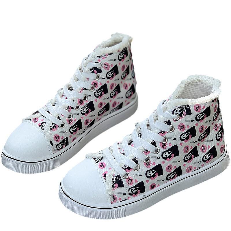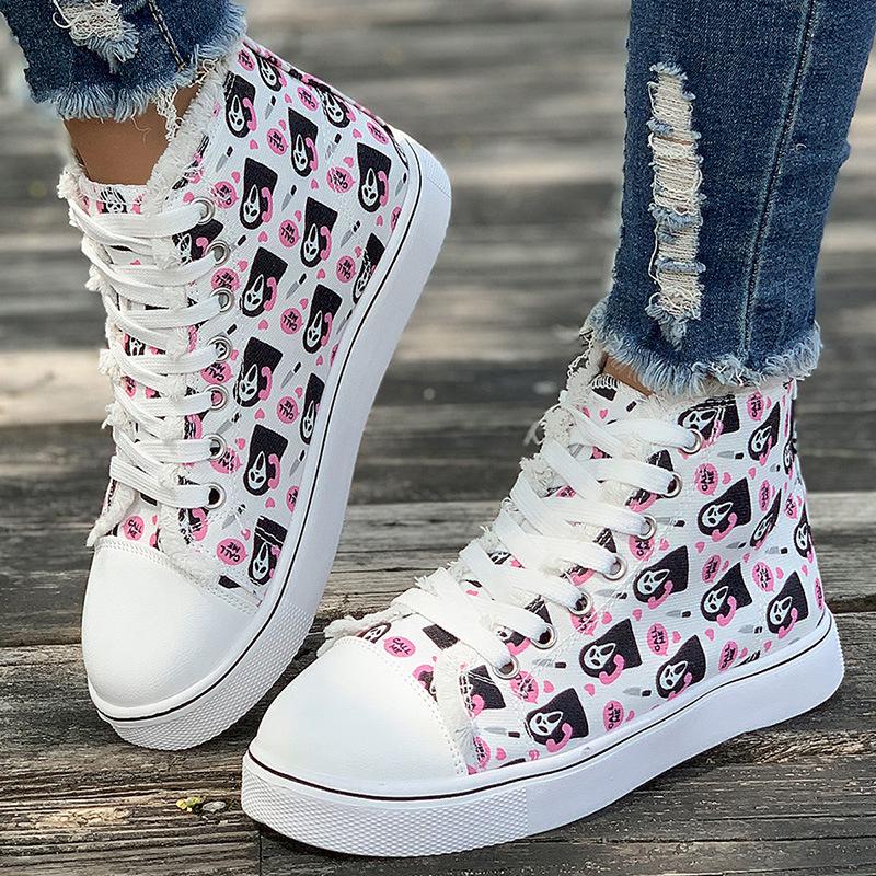 Женские кроссовки для сноуборда с принтом, большие размеры, высокие парусиновые туфли, повседневная обувь на плоской подошве со шнуровкой