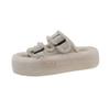 Толстые пушистые тапочки с эффектом возвышения подошвы для женщин, большие размеры, новые осенне-зимние тапочки с пряжкой для ремня, для офиса и дома, хлопковая швабра